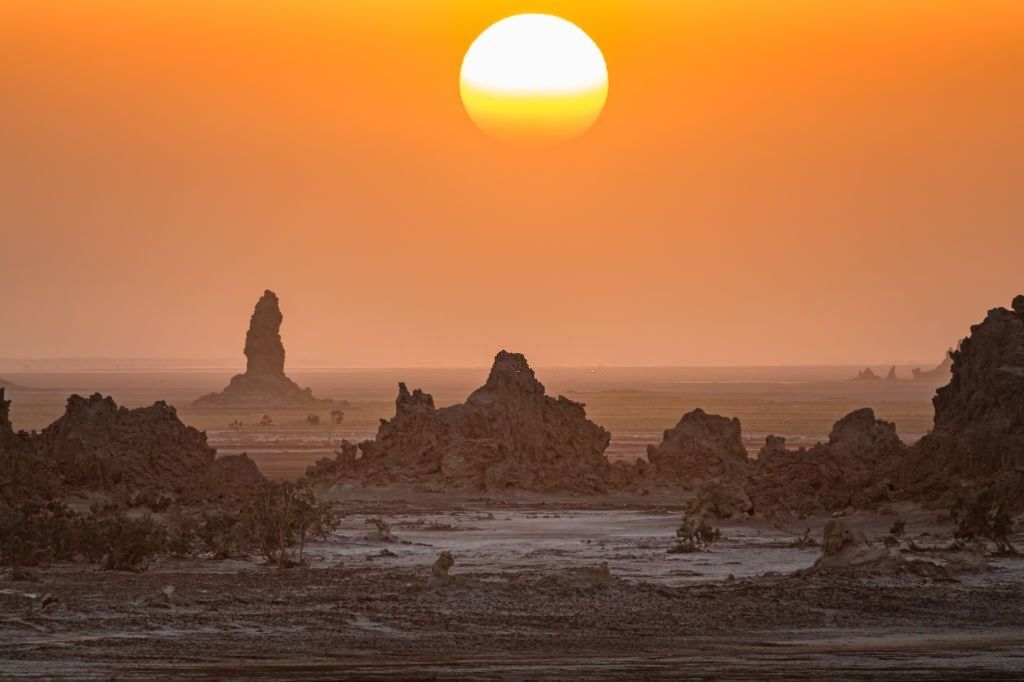 После завтрака отправление на юг страны, с посещением деревень Arta Village, Grand & Petit Bara. Знакомство с великой пустыней и цветными горами. Прибытие в Dikhil. Обед. Размещение. Закат на озере Аббе. Кипящие термальные источники, известняковые колонны – трубы, вулканические горы.
