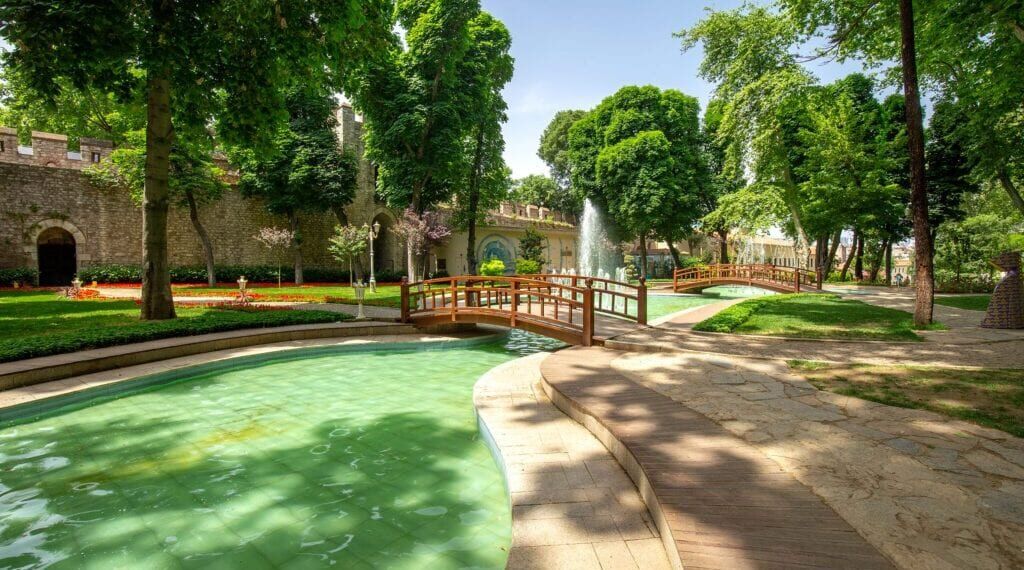 Прямо напротив Айя София находится Голубая мечеть. Она была построена в 17 веке султаном Ахмедом I. Пытаясь снискать милость божью, он сделал это сооружение сверхроскошным – при строительстве использовались драгоценные камни и мрамор. Поговаривают, что такого роскошного убранства нет ни в одной мечети мира.